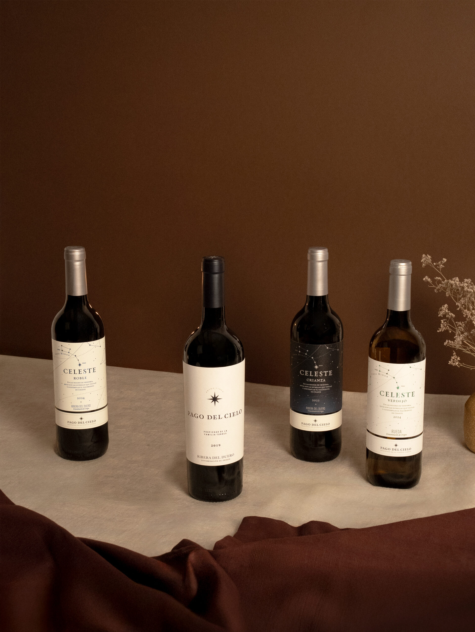 Shooting de producto de las variedades Celeste Roble, Verdejo, Crianza, Range y Pago del Cielo para la temporada de otoño.